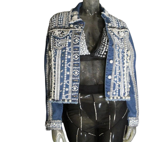 Natalia- Blue Denim Pearl Beaded Jacket