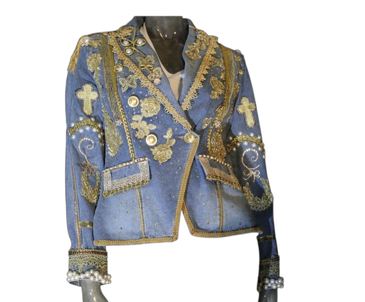 Derrico - Royal Gold Denim Lace Jacket