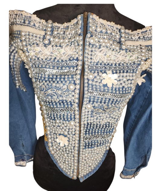 Sexy Mama- Blue Denim Pearl Bustier