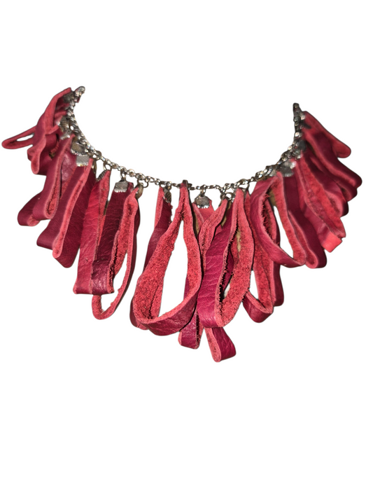 Red Ribbon Looped Leather Necklace