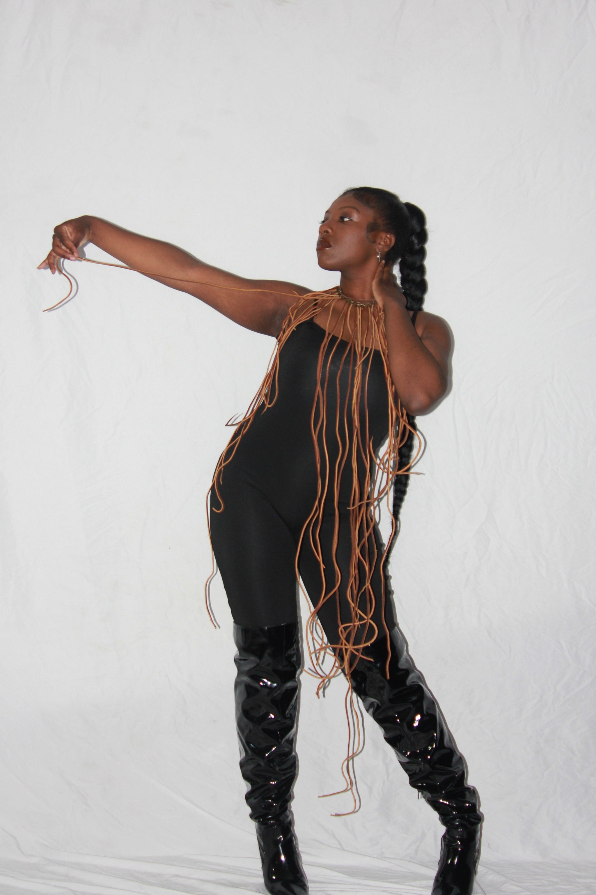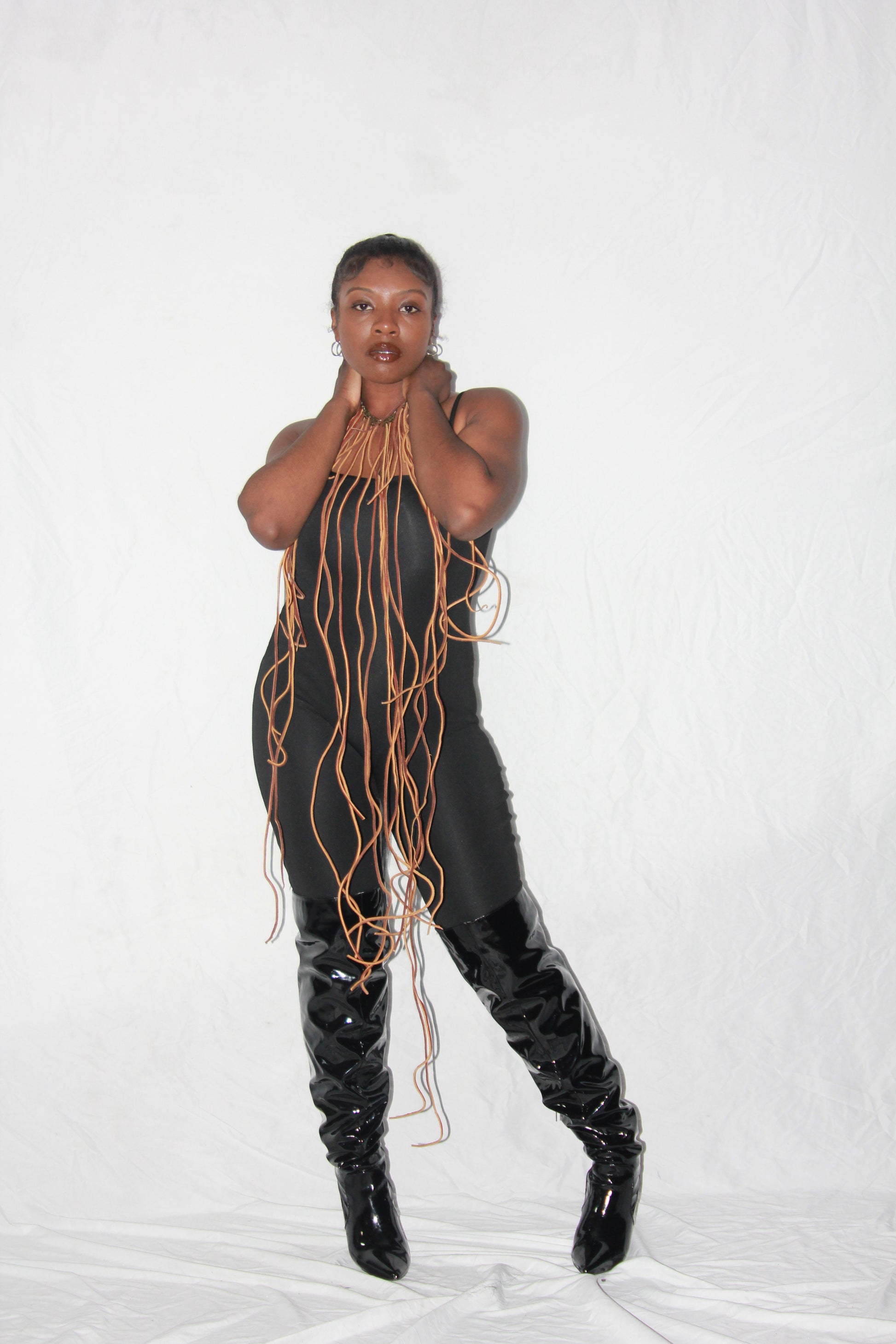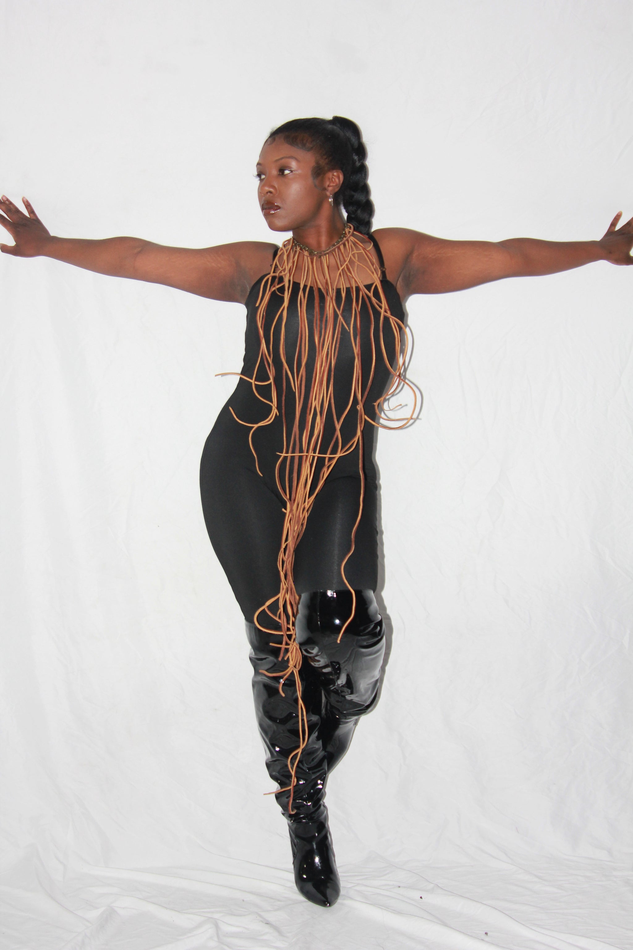 - Das Leder wird in die Klemme eingelegt und die Biegeringe werden von Hand mit einem Streifen nach dem anderen verbunden. Anschließend wird es mit einer Gliederkette aus Antikgold verbunden, bis es gefüllt ist, wodurch die Halskette vervollständigt wird