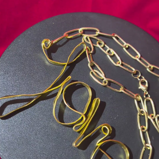 š¤ Golden LOVE Script Couture Pendant Linked Necklace