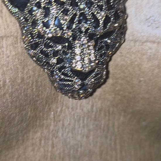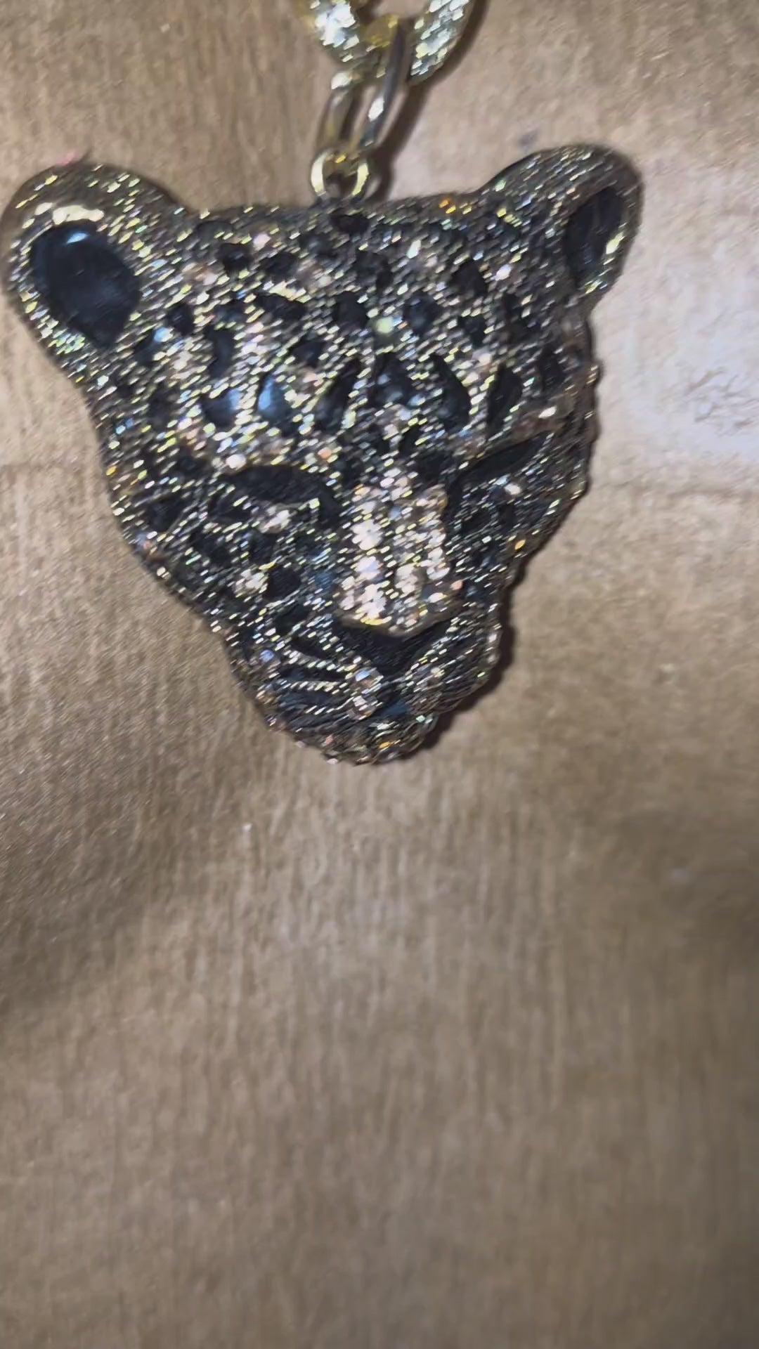 Intricately designed jaguar pendant encrusted with shimmering rhinestone crystals