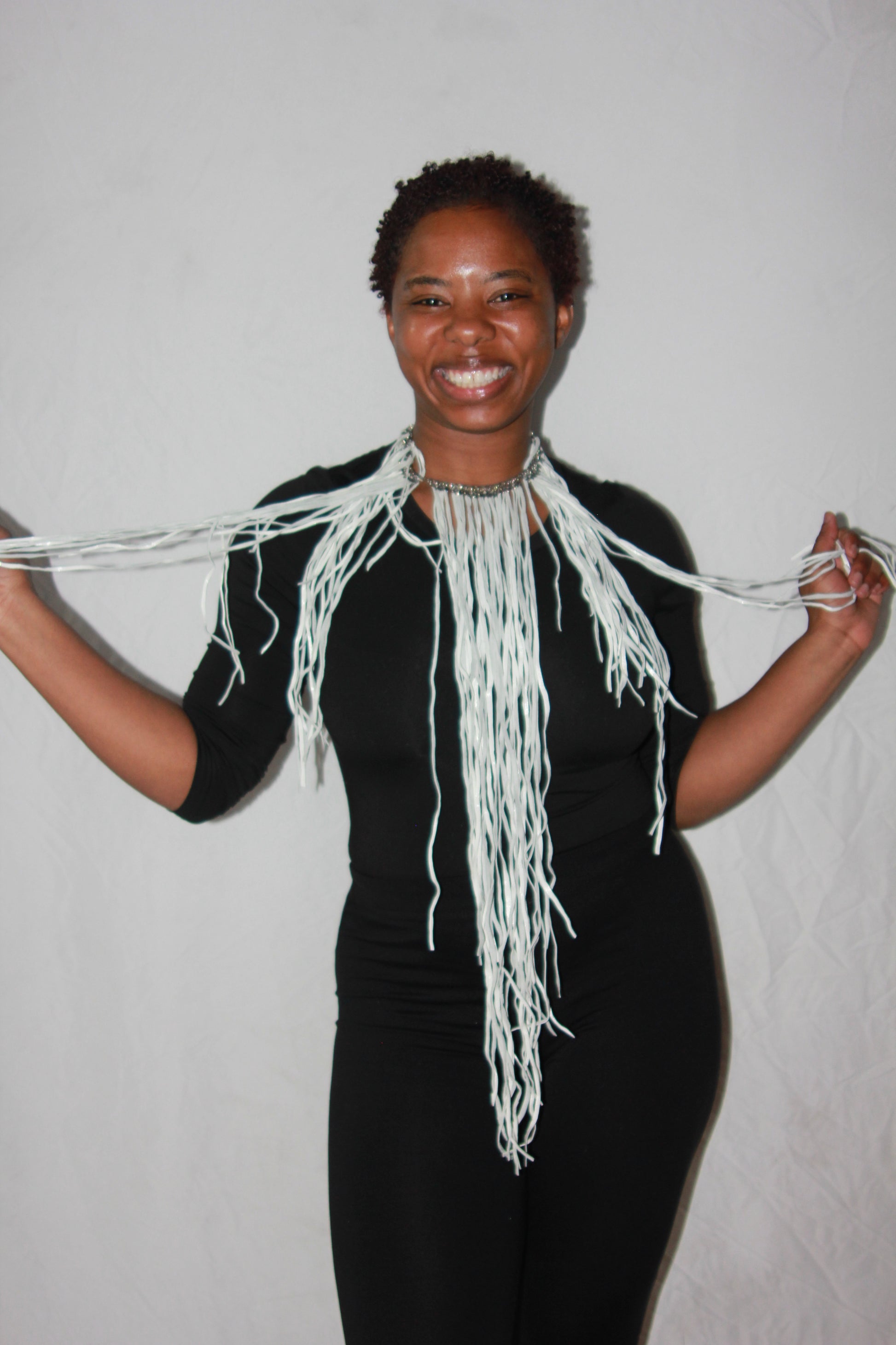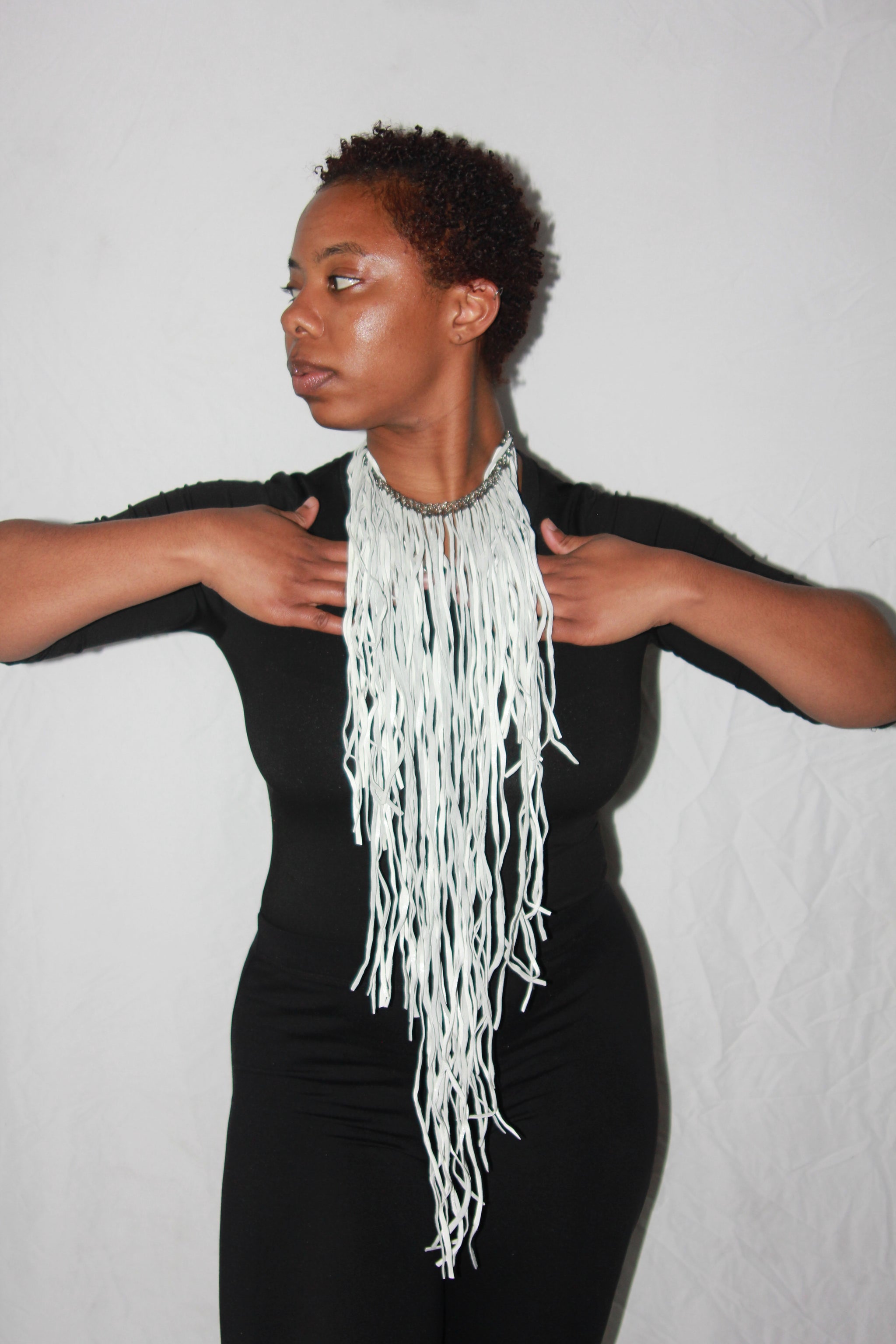 - Das Leder wird in die Klemme eingelegt und die Biegeringe werden von Hand mit einem Streifen nach dem anderen verbunden. Anschließend wird es mit der silbernen Gliederkette verbunden, bis es gefüllt ist, wodurch die Halskette vervollständigt wird
