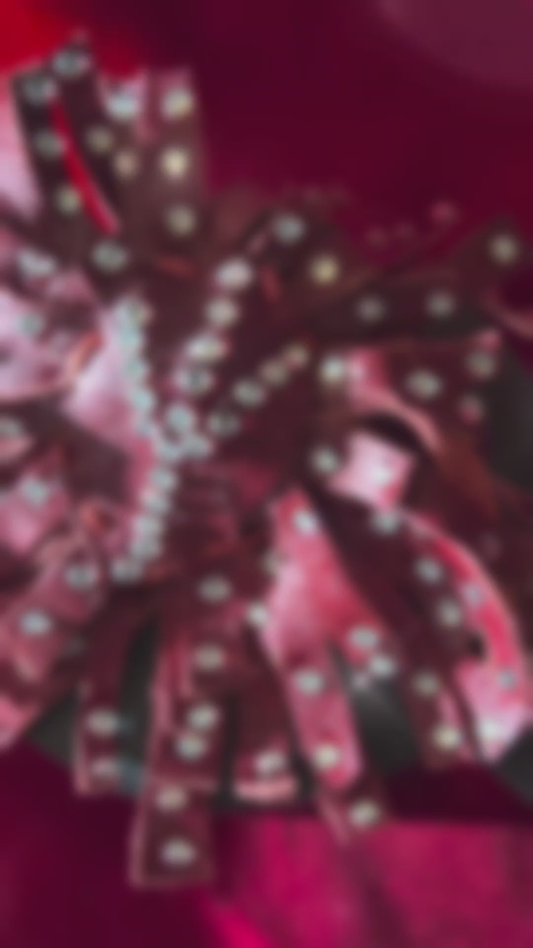 Materials: Red Premium leather stripes, hand-studded swarovski crystal rhinestones, silver accents.
